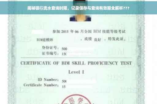 摘要:银行查流水时限揭秘,银行记录保存与查询的有效期限因银行政策而异。一般而言,银行流水记录可查询的时间范围为最近几个月至几年不等。具体期限取决于银行内部规定及客户需求。若需查询更久远流水记录,需向银行申请调取历史记录。了解银行查流水时限有助于个人和企业合理管理财务,确保记录安全保存。??