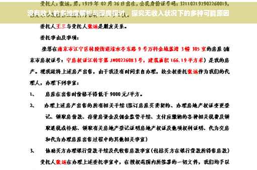 摘要:本文将多维度解析与深度探讨没有收入的现象,探讨其背后的原因。文章将阐述个人没有收入的各种可能性,包括但不限于就业市场的不景气、个人职业技能不足、经济环境的不利因素等。文章还将探讨社会结构、经济政策等对个人收入的影响。通过深度分析,揭示没有收入的多重因素,以期帮助个人更好地认识自身处境,寻求改变现状的途径。