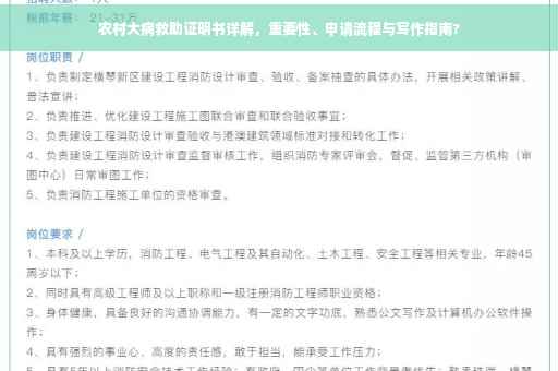 随着国家对农村医疗保障体系的不断完善,农村大病救助已成为一项重要的民生工程,为了帮助农村贫困患者解决因病致贫、因病返贫的问题,各地纷纷出台了农村大病救助政策,本文将详细介绍农村大病救助证明书的重要性及其申请流程,以便广大农民朋友了解并正确行使自己的权利。
