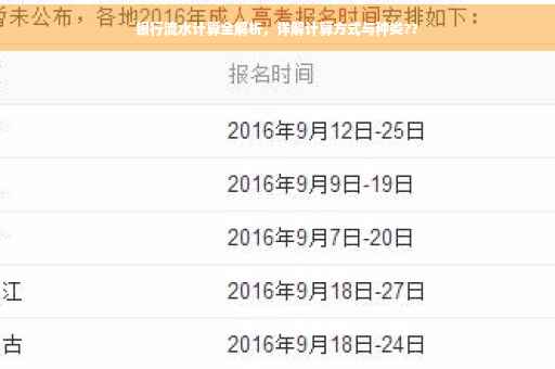 摘要:本文将详细介绍银行流水的计算方式,包括常见的计算方法和注意事项。通过本文,读者可以了解银行流水计算的基本流程,掌握不同计算方式的特点和应用场景。文章将帮助读者更好地管理个人财务和资产,提高理财效率。