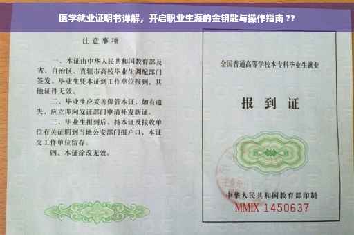 随着社会的不断发展和人口老龄化的加剧,医疗行业的需求日益增长,医学就业证明书在现今社会的重要性也日益凸显,作为自媒体作者,我将为您详细解读医学就业证明书的作用、意义及其在求职过程中的实际应用,助您顺利开启职业生涯的金色钥匙。