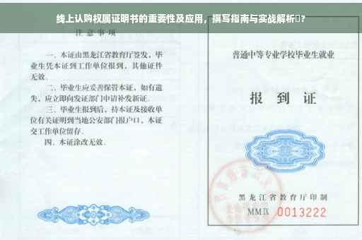 随着互联网技术的不断发展,线上交易逐渐成为人们生活中的常态,在这一背景下,线上认购权属证明书作为一种重要的法律文件,其地位和作用愈发凸显,本文将详细介绍线上认购权属证明书的概念、作用及其在现实生活中的应用,帮助大家更好地理解和运用这一工具。