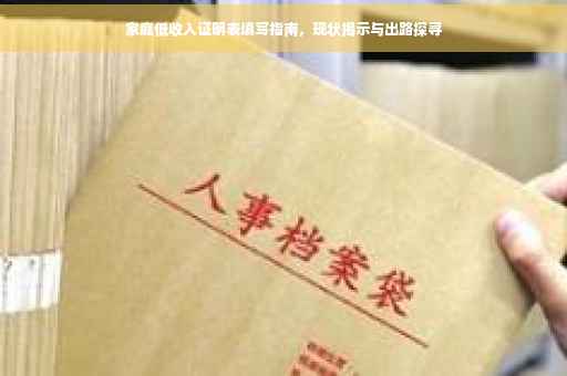 摘要:,,本文章关注家庭低收入问题,通过介绍家庭低收入证明表的填写方式,揭示低收入家庭的现状。文章将指导读者如何正确填写家庭低收入证明表,并寻找解决收入低的出路。内容涵盖表格的填写要点、家庭收入现状分析以及寻找改善收入状况的途径。旨在帮助低收入家庭走出困境,实现经济状况的改善。