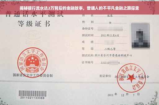 当今社会,随着经济的蓬勃发展及人们收入水平的不断提高,银行流水已然成为衡量个人经济实力的一项重要指标,当一个人的银行流水达到每月2万时,这背后往往代表着其长时间的努力工作和收入的积累,本文将围绕这一主题展开讨论,深入探究银行流水达2万背后的故事,揭示普通人的不平凡金融之路。