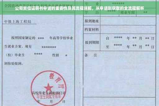 摘要:公司资信证明书是公司信用和财务状况的重要证明,对于企业发展至关重要。申请资信证明书需要遵循一定的流程,包括准备相关材料、提交申请、审核和颁发证书等步骤。本文详细解析了公司资信证明书申请的重要性及其流程,帮助申请者更好地了解和完成申请过程。
