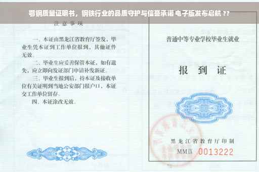 在当今社会,钢铁行业的发展日新月异,市场竞争日益激烈,作为一家拥有悠久历史和卓越品质的钢铁企业,鄂钢始终坚守质量至上的原则,致力于为客户提供最优质的产品和服务,鄂钢质量证明书不仅是企业信誉的承诺,更是对每一位客户的质量保障,本文将深入探讨鄂钢质量证明书的内涵及其在企业发展中的重要性。