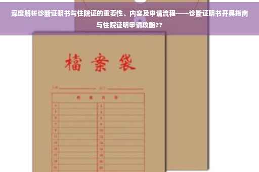 诊断证明书和住院证在患者就医过程中扮演着重要的角色,了解它们的重要性、内容及申请流程对于患者而言至关重要,本文旨在帮助广大患者更好地了解自己的权益和就医流程,确保就医过程的顺利进行,如有疑问,建议及时咨询医生或医院相关部门,注:诊断证明书与住院证的具体内容和申请流程可能因医院规定有所不同,请以实际情况为准。