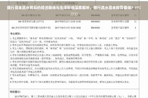 随着现代金融业的快速发展,银行在我们的日常生活中扮演着越来越重要的角色,银行流水作为个人经济活动的记录,不仅关乎个人财务管理,更在一定程度上反映了社会经济运行的状况,本文将重点探讨银行周末流水背后的经济逻辑及其对人们日常生活的影响。