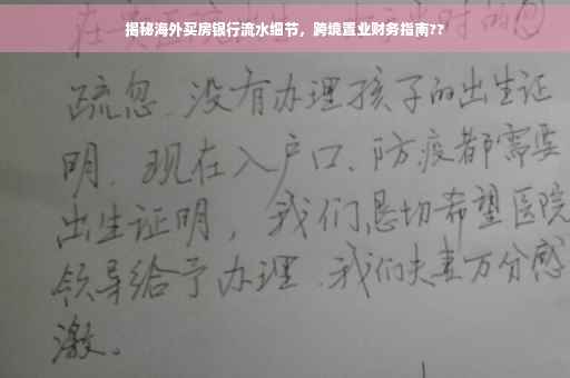随着全球化的发展和人们财富的不断增长,越来越多的人开始关注海外房产投资,在海外购房过程中,银行流水作为财务证明的重要组成部分,往往成为许多人关注的焦点,本文将详细介绍海外买房银行流水的相关知识,帮助读者更好地了解这一过程。
