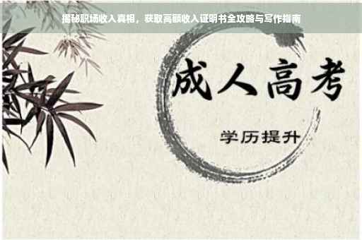 随着社会的不断发展,收入证明书作为展示个人经济实力和社会地位的重要凭证,越来越受到人们的关注,本文将深入探讨职场收入的真相,帮助读者了解如何获取高额收入证明书,并分享一些实用的经验和建议。