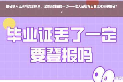 摘要:本文将为你深入解析收入证明与流水账单的关系,为你揭示两者的重要性及其背后的秘密。了解如何根据收入证明合理查询流水账单,确保你的财务安全。本文旨在帮助你理解收入证明与流水账单的重要性,并提供相关建议和指导,让你的财务规划更加明晰。