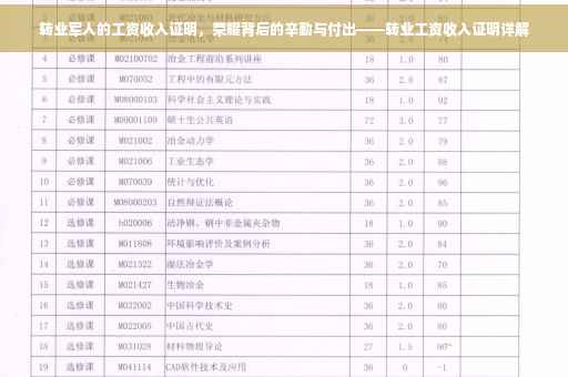 随着时代的变迁,越来越多的转业军人走向社会,融入普通老百姓的生活中,他们曾是国家的骄傲,是保卫家园的英雄,带着军人的荣耀和坚韧品质,他们投身于各行各业,开始了新的生活篇章,转业军人的工资收入证明背后,隐藏着怎样的故事和付出呢?让我们一起走进他们的生活,探寻那份辛勤与荣耀。