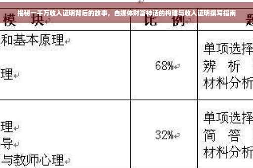 在当今社会,随着互联网的普及和自媒体平台的崛起,越来越多的人开始追求自主创业和财务自由,一千万收入证明成为了众多自媒体作者追逐的目标,它代表着成功、财富和影响力,如何获得一千万收入证明呢?本文将为你揭示自媒体作者的财富神话背后的故事。