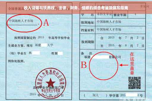 摘要:本文将探讨收入证明与抚养权问题,涉及法律、财务和情感方面的综合考量。文章将介绍如何撰写收入证明以支持抚养权申请,同时强调收入证明在抚养权争夺中的重要性。本文将提供有关法律程序和财务证据的相关指导,并提醒读者情感因素在抚养权决策中的影响。通过综合考量这些因素,申请人可以更好地准备和呈现自己的收入证明和抚养权申请。