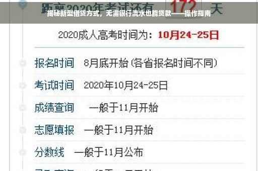 在金融市场的多元化发展下,贷款方式不断创新,近年来,无需银行流水的贷款逐渐受到广泛关注,本文将为您详细解读这种新型借贷方式的特点、优势、申请流程以及市场现状、发展趋势和风险防范建议,助您更全面地了解这一金融产物。