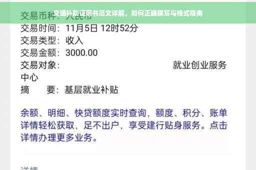 交通补助证明书是用于证明员工因公务出行所产生的交通费用的正式文件,本指南旨在为员工们提供清晰、规范的证明书范例,确保在需要时能够准确、快速地完成填写,以下将详细介绍证明书的主要内容、书写规范及注意事项,并附有范例以供大家参考。