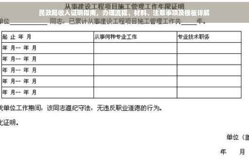 在现代社会中,收入证明已成为办理各类事务不可或缺的重要凭证,特别是在金融、房产、法律等领域,它更是扮演着举足轻重的角色,对于需要从民政局开具收入证明的朋友们,了解相关的办理流程、所需材料以及注意事项显得尤为重要,本文将为您详细介绍民政局收入证明的相关知识,助您顺利获取收入证明。