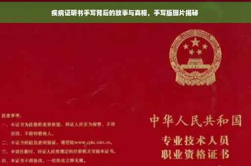 摘要:本文将探讨疾病证明书的手写图片版本背后的故事和真相。通过深入了解这些手写的疾病证明书图片,我们将揭示其背后的原因和重要性,以及它们在现代医疗体系中的角色和作用。这些证明书可能承载着患者的健康状况信息,对于医疗诊断、治疗和康复过程具有重要意义。
