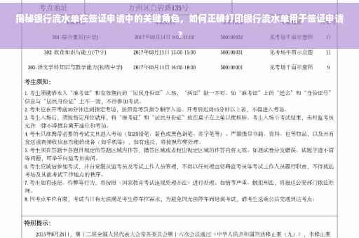 银行流水单在签证申请过程中扮演着举足轻重的角色,了解银行流水单在签证申请中的关键作用及如何准备有效的银行流水单,将有助于申请人顺利获得签证,在申请签证时,请务必提前规划,确保提供真实有效的材料。