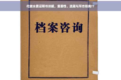 摘要:,,本文将详细介绍代缴水费证明书的重要性以及流程。通过本文,读者将了解到代缴水费证明书的作用和如何正确撰写。文章将涵盖代缴水费证明书的书写要点和注意事项,以帮助读者顺利完成水费缴纳过程。通过阅读本文,您将了解代缴水费证明书的撰写技巧及其在实际应用中的重要性。