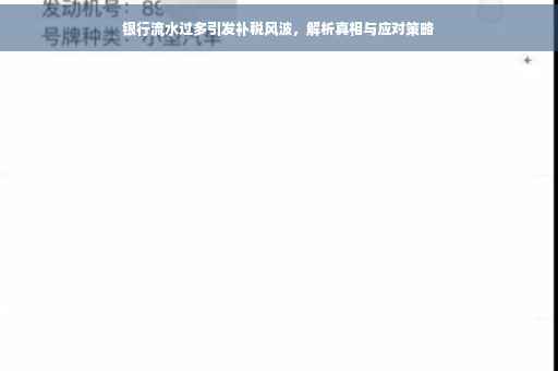 摘要:近期因银行流水过多引发的补税风波备受关注。背后真相究竟为何?面对因银行流水过多导致的补税问题,个人和企业应如何应对?本文将深度解析这一问题,并探讨合理的解决方案。面对补税,需了解相关法规,合理规划财务,确保合规纳税。