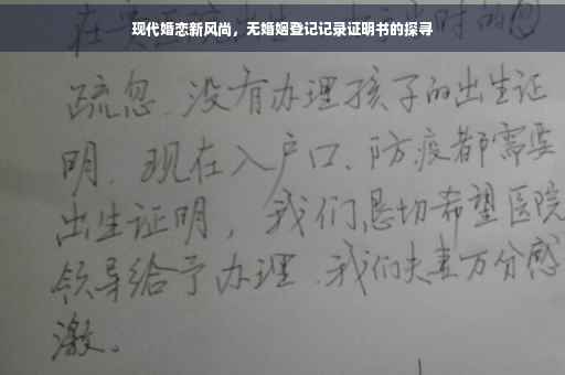 随着社会的不断发展和变迁,传统的婚姻观念逐渐受到挑战,越来越多的人开始追求自由、独立的生活方式,选择不结婚或者推迟结婚,在这样的背景下,《无婚姻记录证明书》成为了一种新的社会现象,也逐渐引起了人们的关注,本文将围绕这一主题展开探讨,分析现代都市的婚恋新风尚。