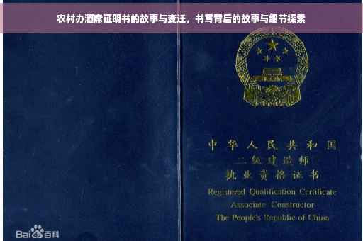 摘要:,,本文将探讨农村办酒席证明书的背后故事与变迁。文章将介绍农村办酒席证明书的起源、发展及其在当前社会的重要性。也会详细阐述如何撰写农村办酒席证明书,包括其格式、内容和注意事项。随着时代的变迁,农村办酒席证明书不仅是庆祝活动的凭证,也反映了农村文化和社会发展的变迁。本文旨在让读者了解这一文化现象的同时,掌握撰写农村办酒席证明书的技巧。