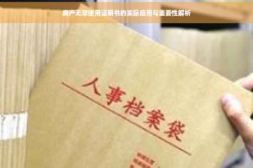摘要:,,本文介绍了无常使用证明书的重要性和实际应用,特别是在房产领域。这份文件对于证明某处房产的当前状态至关重要。通过阐述其实际应用场景,本文强调了无常使用证明书在保障产权、维护合法权益方面的关键作用。对于涉及房产交易、租赁等场合,此证明书具有不可或缺的重要性。