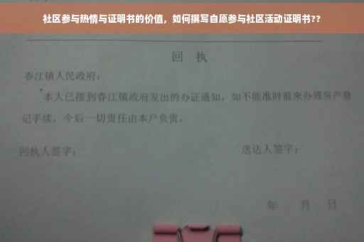 自愿参与社区活动证明书在个人成长、社会融入、社区发展等方面具有重要意义和价值,我们应当重视这份证明书的作用,积极参与社区活动,为社区的发展贡献自己的力量。