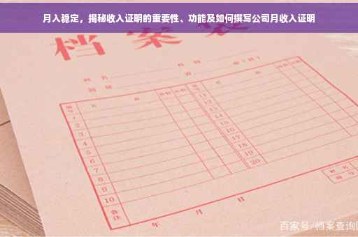 在现代社会,随着经济的发展和就业市场的繁荣,越来越多的人开始重视自己的收入证明,收入证明不仅是个人经济能力的体现,更是个人信用和社会地位的象征,对于在职员工来说,公司提供的月收入证明具有极其重要的意义,本文将详细介绍收入证明的作用、内容以及获取方式,帮助读者更好地了解这一重要文件。