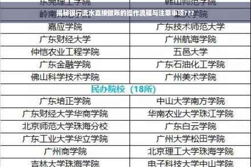 银行流水直接做账是企业财务管理的重要环节,涉及多个方面和细节,本文深入探讨了银行流水直接做账的操作流程、注意事项以及可能遇到的问题和解决方案,旨在帮助企业和会计从业者更好地应用这一财务处理方式,提高财务管理效率和准确性。