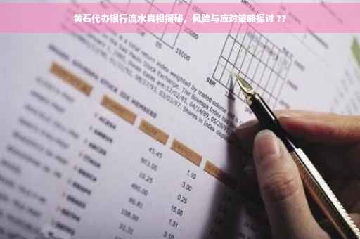 随着社会的飞速发展,银行业务普及率越来越高,银行流水作为评估个人或企业信用等级的关键依据之一,其重要性逐渐凸显,在黄石这座美丽的工业城市中,代办银行流水业务的兴起满足了部分特定需求,但同时也伴随着风险和挑战,本文将带您深入了解黄石银行流水代办的现状、潜在风险及应对策略。