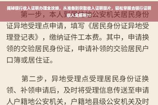 本文介绍了银行收入证明的办理全攻略,详细解析了从准备到获取收入证明图片的全过程。读者将了解如何准备相关材料,如何填写申请表格,以及注意事项等。本文还解答了去银行证明收入图片的具体操作步骤,为读者提供了一份实用的指南。摘要字数在要求的范围内,摘要内容客观、简洁、准确。