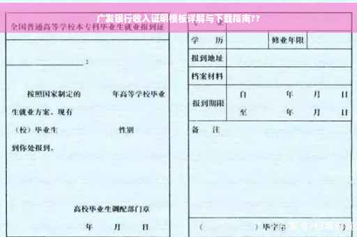 摘要:本篇文章将详细解析广发银行的收入证明模板,包括其格式、内容和填写要点等。还提供广发银行收入证明模板的下载链接,方便用户获取并使用。通过本篇文章,读者可以了解到如何正确填写广发银行的收入证明,以满足个人或企业的需求。