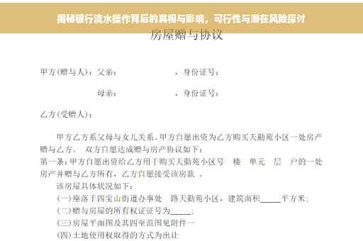 摘要:银行多做点流水,背后隐藏着真相与影响。银行通过增加流水来扩大业务规模,提高收益。这也可能增加风险,如资金流动性和监管合规问题。银行需要在合理范围内操作,确保合规性和风险控制。客户也需警惕不当操作可能带来的不良影响。银行多做流水需在合规与风险之间取得平衡。