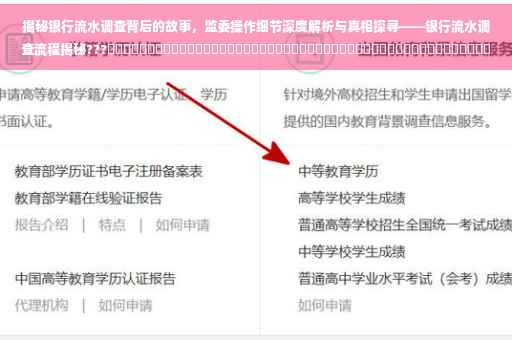 随着金融行业的迅猛崛起,银行流水作为个人和企业经济活动的真实记录,已引起社会各界的广泛关注,特别是在涉及经济犯罪、反腐调查等领域,其重要性尤为凸显,监委对银行流水的深入调查,已成为获取关键证据、揭开真相的重要手段,本文将详细介绍监委如何深入调查银行流水,带您一探究竟。