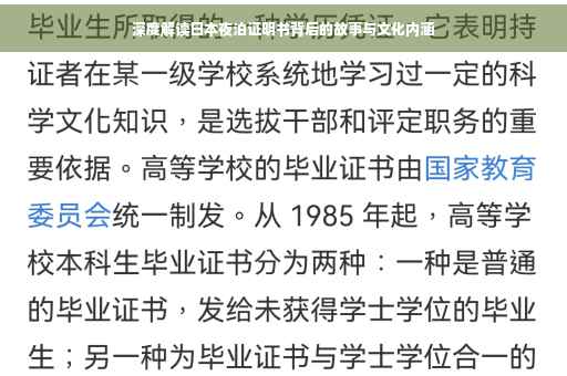 摘要:日本夜泊证明书是一种独特的文化现象,蕴含着丰富的故事和文化内涵。它代表着日本独特的传统生活方式和社会习俗,反映了日本人对生活的热爱和对文化的珍视。通过深度解读夜泊证明书背后的故事和文化内涵,我们能够更好地理解日本文化的独特魅力和深厚底蕴。