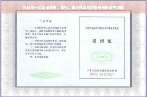 本文旨在揭示银行流水调查令的真相、重要性及应对之策,以便您更好地了解并应对银行流水调查令,在生活中遇到相关情况时,请保持冷静,知道自己的权益,合理应对。