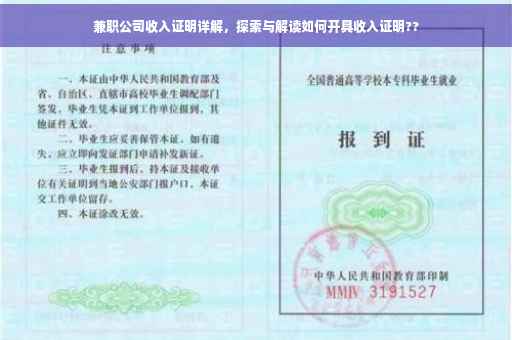 本文详细探讨了兼职公司的收入证明相关问题,包括重要性、内容、获取方式、注意事项等,希望通过本文的介绍和分析,读者能更好地了解和应对兼职公司收入证明相关问题。