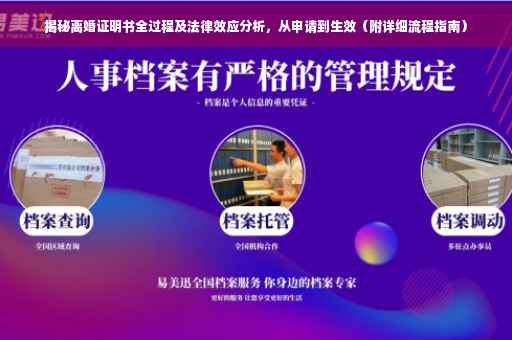 摘要:本文将详细介绍离婚证明书的申请流程,包括申请条件、申请过程以及生效过程,并深入分析离婚证明书的法律效应。全文涵盖从申请到生效的全过程,并附有详细流程。通过阅读本文,读者可以全面了解离婚证明书的重要性和作用,以及申请过程中需要注意的事项。适合对离婚法律事务感兴趣或正在经历离婚过程的人士参考。