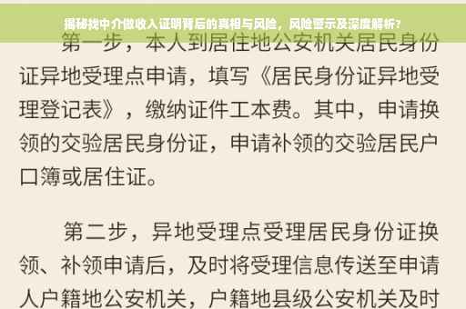本文约XX字(不含标题和格式要求),希望通过深入探讨找中介制作虚假收入证明的现象及其风险与后果,帮助广大读者认清事实真相做出明智决策。