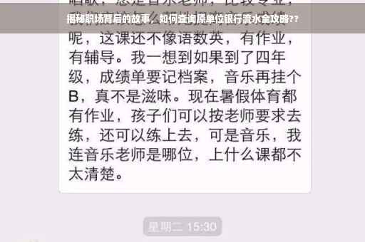 摘要:本文将介绍如何通过原单位银行流水揭示职场背后的故事,包括如何查询原单位银行流水的方法和步骤。通过了解个人在原单位的资金流向和交易记录,可以更好地了解自己的职业状况,发现潜在的问题和机会,有助于个人职业发展和成长。