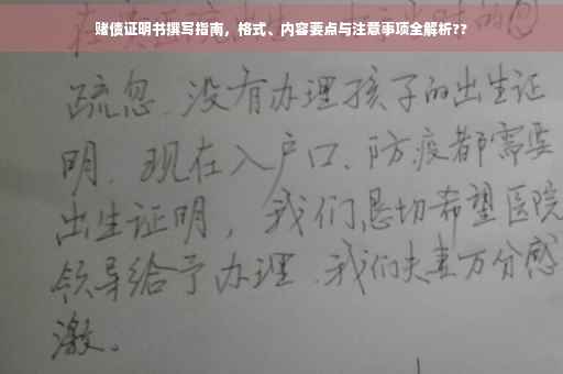 在现代社会中,赌博行为是非法的,并且可能导致严重的财务和法律后果,有时,人们因参与赌博而产生债务问题,需要撰写赌债证明书以解决纠纷或证明债务的真实性,本文将详细介绍赌债证明书的撰写方法,帮助大家了解如何正确、完整地表达相关信息,以便有效地解决赌债问题。