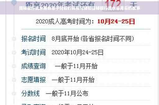 银行流水账单上的黑色章子背后的秘密和真相,涉及到银行的内部操作和业务流程,由于不同银行内部规定和操作方式的差异,黑色章子的具体含义和背后的秘密可能会有所不同,在解读黑色章子的含义时,需要结合具体银行的政策规定和业务流程进行分析,作为个人隐私的一部分,个人在提供流水记录时需要注意保护个人隐私,避免泄露个人信息。