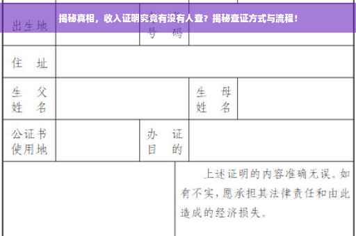 随着社会的快速发展,越来越多的人投身于各行各业,收入证明作为个人经济能力的直接体现,成为了生活中不可或缺的一部分,无论是求职、贷款、办理信用卡还是其他场合,收入证明往往扮演着重要的角色,这些收入证明真的有人查吗?本文将围绕这一问题展开深入探讨。