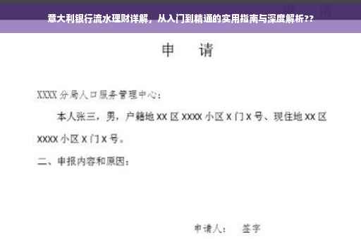 意大利银行流水理财,是指投资者在意大利银行账户中,通过定期存入一定金额的资金,获取银行提供的利息收益的一种理财方式,这种理财方式相对稳健,适合风险承受能力较低的投资者。