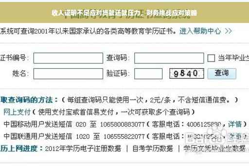 收入证明是评估个人贷款偿还能力的重要凭证,当收入证明不足以偿还贷款时,银行和其他金融机构在审批贷款时可能会持谨慎态度,我们需要认识到财务压力的挑战,并采取积极的应对措施。