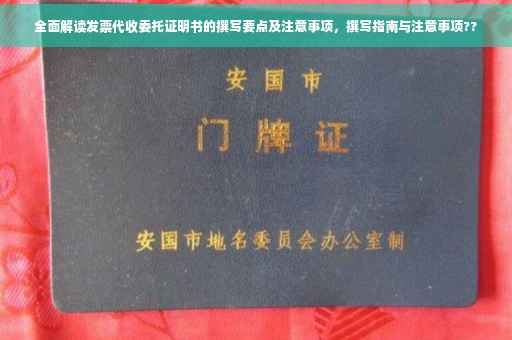 摘要:本文将全面解读发票代收委托证明书的撰写要点及注意事项。撰写时需注意明确委托人和被委托人的身份信息、委托事项的具体内容,包括发票的种类、金额、代收方式等,并明确双方的权利和义务。注意事项包括确保真实合法、防范风险、注意保密等。本文将指导读者如何规范撰写发票代收委托证明书,以确保其法律效力及实用性。