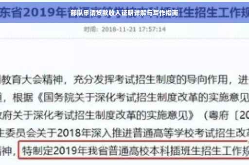 随着国家经济的蓬勃发展,金融市场日益繁荣,在此背景下,许多部队单位为改善基础设施、增强战斗力保障等需求,纷纷考虑申请贷款以支持各项建设,在申请贷款的过程中,收入证明成为了评估部队偿债能力的重要凭证之一,本文将深入剖析部队申请贷款收入证明的相关内容,旨在帮助部队单位顺利获得贷款支持。