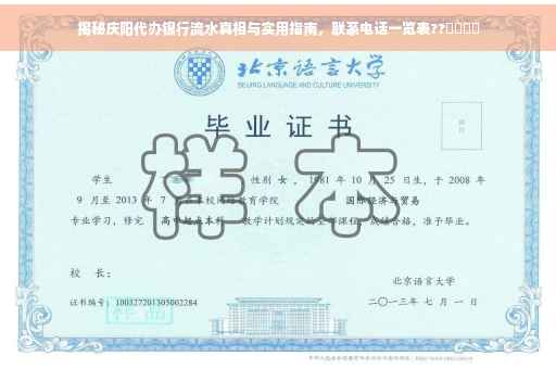 摘要:本文将揭示庆阳代办银行流水的真相,并提供实用指南。读者将了解到代办银行流水的相关细节和注意事项。提供庆阳代办银行流水的联系电话,方便需要的人快速找到可靠的代办服务。本文旨在帮助读者了解代办银行流水的过程,并避免不必要的麻烦。